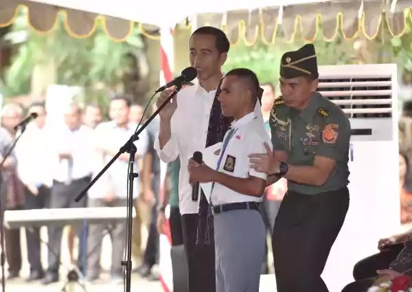 Yofamedia.com, NTT - Presiden Jokowi berdialog dengan salah seorang siswa tunanetra, di SMK Negeri 3, Kupang, NTT, Senin (8/1) pagi.
